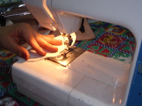 Ahora procedemos a coser la tela. De igual manera que la Manta, tambien debemos hacerle un pequeño ruedo.