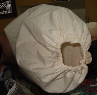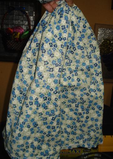 Poco a poco hemos ido formando la muñeca y ya hemos llegado a obtener la parte de abajo que es la que nos servirá para guardar las bolsas. Observa como vamos dando forma :