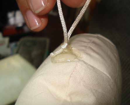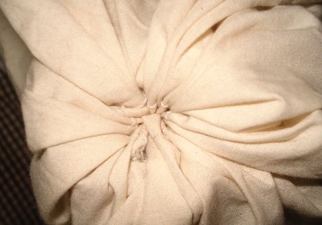 Debemos de sellar con un pequeño nudo y entonces ya tenemos la bolsa de la Tela de Manta.