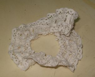 Debes usar una medida aproximada de 10cm. Cuando ya hayas finalizado con todo el listón debes tirar del hilo para fruncirlo y te quedará de la siguiente manera: