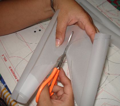 en el papel albaneque, pasamos a recortarlas en la Tela de Manta