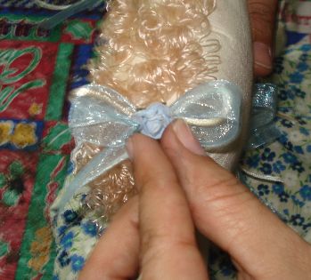 Ésta la pegaremos con barritas de silicon en la cabecita de la muñeca.